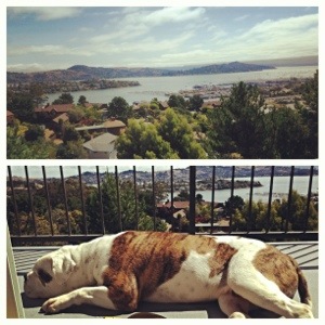 During the day, the view takes it to another level entirely – spectacular. I’ve never seen a sky so blue, nary a cloud littering its canvas. The trees are the greenest of greens, majestic. The sun warmly shines its colours on us bringing out our best. The boats are now out, sailing the bay. During the weekends, the 101 is bumper-to-bumper traffic, the Marin County citizens searching for the nearest hiking trail or dog park, of which both are plentiful. Though I sit atop the hills, behind me are still more rising up above me, hills with trails everywhere that Taylor and I frequent. Among them, one leads to the Golden Gate Bridge. That one is longer, and neither of us have made it that far; which gives us something for which to look forward.