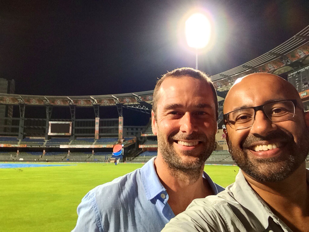 I love Mumbai, and all of its insanity. It’s the first city we’d visited in India that I feel like I would like to live in. We only got a taste of it last night – from stepping onto the empty cricket field (Wankhede Stadium, which was amazingly awesome; there because we mistakenly thought the semi-finals match between the Kings and the SuperKings was last night only to find out it was tonight, when we would be in Goa, tho Derek was able to get a picture with faux MS Dhoni, a famous cricketer) to driving thru its chaotically typical Indian traffic, to its energy and to its outright dirtiness and seediness (yet simultaneously so very bold and sexy). It’s a big (massive, actually) modern city; yet it still carries the traditions of ancient India with her. Because it is just so very different than anything we are used to in the States, there are so many reasons to be taken aback with India, especially with growing up as privileged as so many of us have. Yet, I just love it. Absolutely, unequivocally, with all my heart, love this place. I’m going to come back next year.