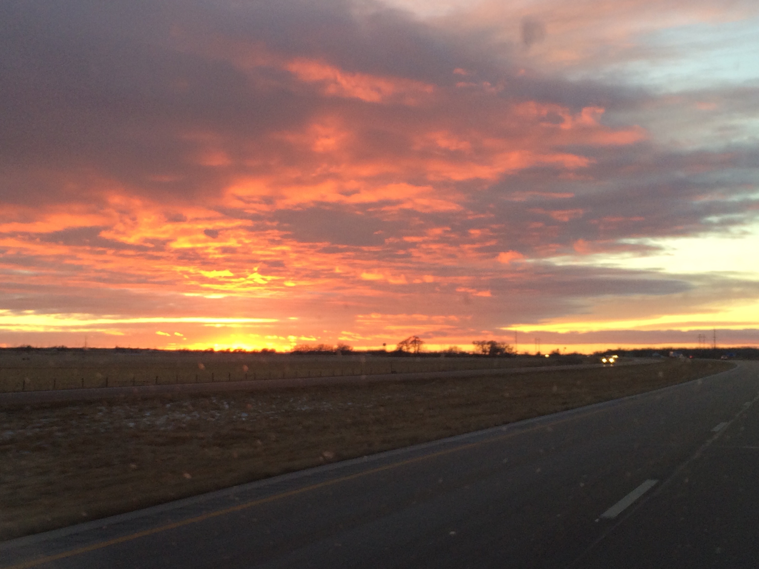 Hola mi familia! I have not had service till now. A little down but not out. I had to change my plans. I ran into a blizzard in South Dakota and finally halfway thru, we had to turn south from I-90 got on 83-S to I-80 in Nebraska (at 2:30p), which we will take all the way to CA. The roads are clear here. Of course, what this means is that Mount Rushmore is still on my bucket list and I didn’t get to drive thru pretty Wyoming. Tay has been a trooper, or he’s just bored out of his mind. This drive has been crazy boring, which I will take over white-knuckling it all morning. Two other points. We found gas for $1.99 in NE. The hazelnut coffee at Pilot gas stations is just horrible. I may never drink coffee again. 4:30p now in Nebraska. Just got into a Starbucks in North Platte, NE so I can text you an update. Still have no phone service; and I don’t think I’m gonna have service for a while still… Getting back on the road.