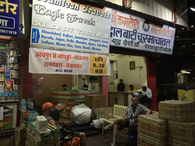Anyways, it’s 7:00 AM, and we’ve been on a bus since 9:00 PM last night in Udaipur when I last heard DaveRisner talk to that nice young couple. Two days ago, we had purchased tickets for an A/C sleeper berth. Surprisingly comfortable, I slept well. We had told the ticketing agent that we wanted a car to take us to the bus stand where we needed to be by 8:00 PM for an 8:30 PM departure. With travel arrangements secured, we had a much needed lazy day, finished getting fitted for our suit jackets and shirts from Rakesh, had a late lunch, showered at Hotel Thamla Haveli relaxing in a room until 7:00 PM.