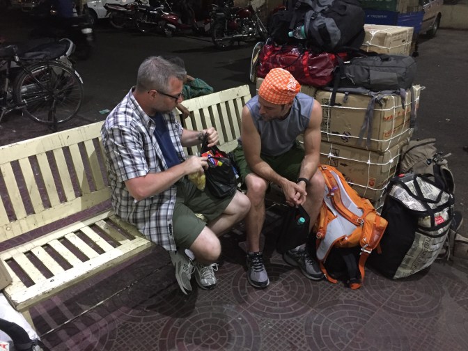 - 8:15 PM – a tuk-tuk arrives to take eleven travelers and their bags to the bus stand. Refusing to get crammed into the tuk-tuk, we ask to have another one sent to us. Incredulously, seven travelers and their bags are somehow scrunched into the tuk-tuk. Derek had an animated conversation with one of the tour operators.